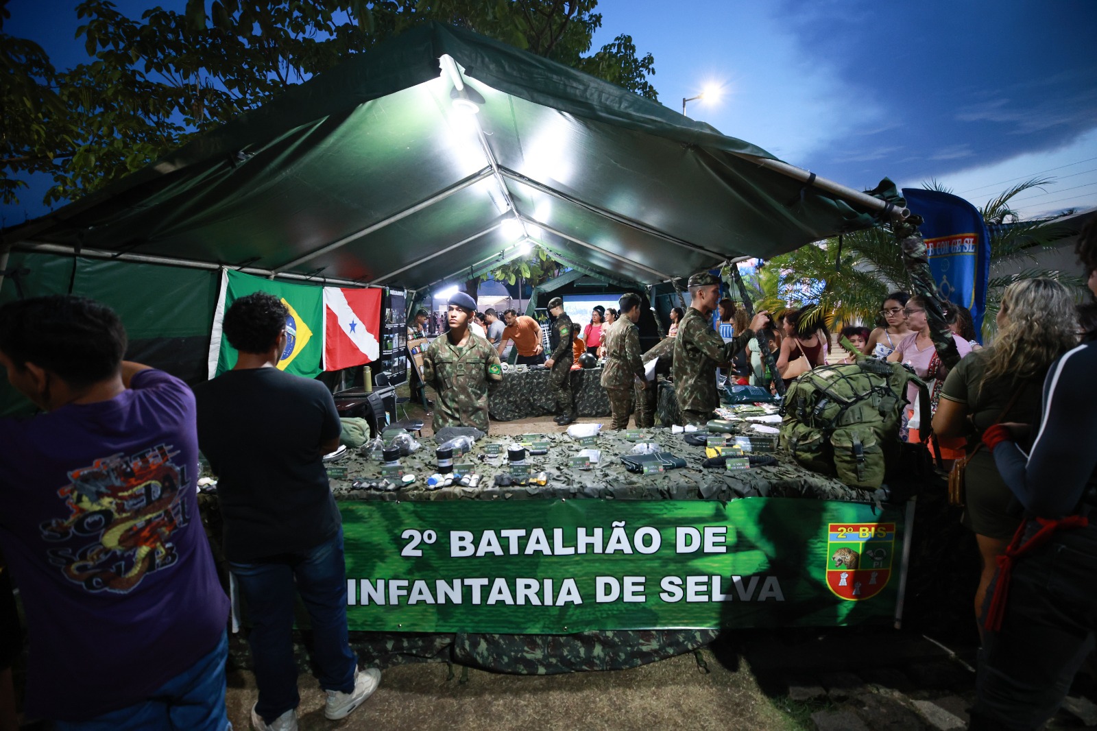 O Exército Brasileiro expõe até esta sexta-feira (21), no Parque Urbano Belém Porto Futuro I, material militar usado em missões reais, como parte da programação da En-Zone, a Zona do Empreendedorismo do Sebrae no Pará durante a COP 30. Na noite desta quinta-feira (20), o movimento foi grande no local, que recebeu também cães empregados em diversas atividades da instituição.